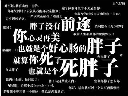 肥胖是會呼吸的痛,肉活在我身上所有角落,吃肯德基會痛,吃麥當勞會痛,連喝水也痛;它流在血液中來回滾動,後悔不減肥會痛,恨不節食會痛,想瘦不能瘦最痛。