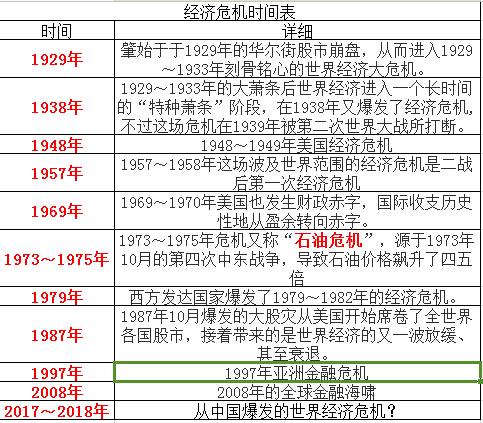 历年经济危机时间表,基本每9-10年会发生一次,2017年中国经济危机?