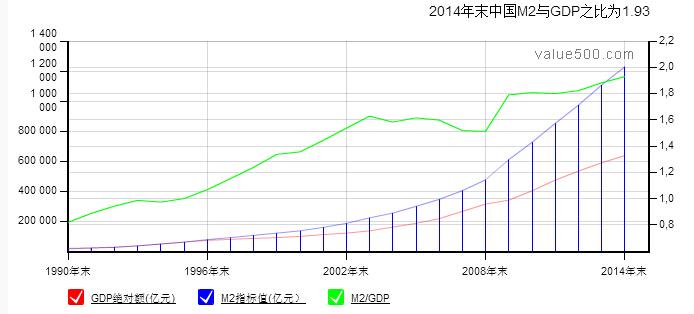 2012年末数据:截至2012年年末,中国的M2/GDP达到1.88创下新高。而同期美国的M2余额为10.04万亿美元,截至2012年3季度,GDP为15.81万亿美元。这是什么概念?等于是中国一块钱的货币供应,只撬动了五毛钱的GDP;而美国,一美元拉动最少1.5美元的GDP。