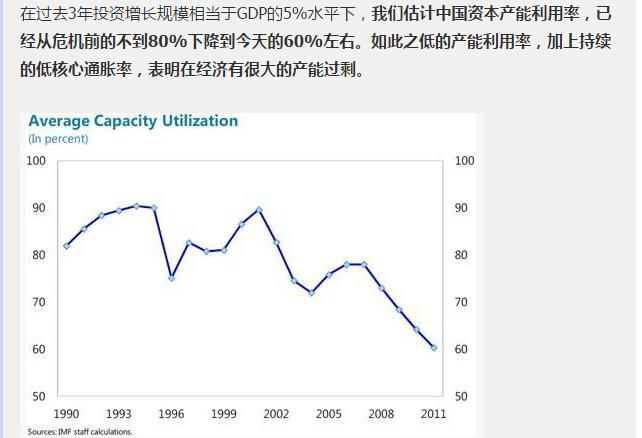 4、引用2012年IMF在的国别评估报告中评估了中国产能过剩程度