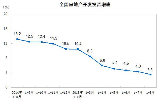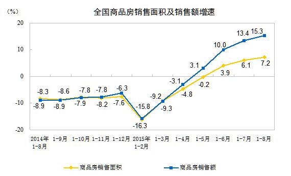 2015年1-8月全国房地产开发和销售情况  http://www.gov.cn/xinwen/2015-09/13/content_2930332.htm  (数据来源于国务院数据)