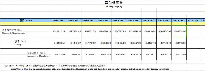 (数据来源与中国人民银行:http://www.pbc.gov.cn/diaochatongjisi/resource/cms/2015/10/2015101616262265041.htm)
