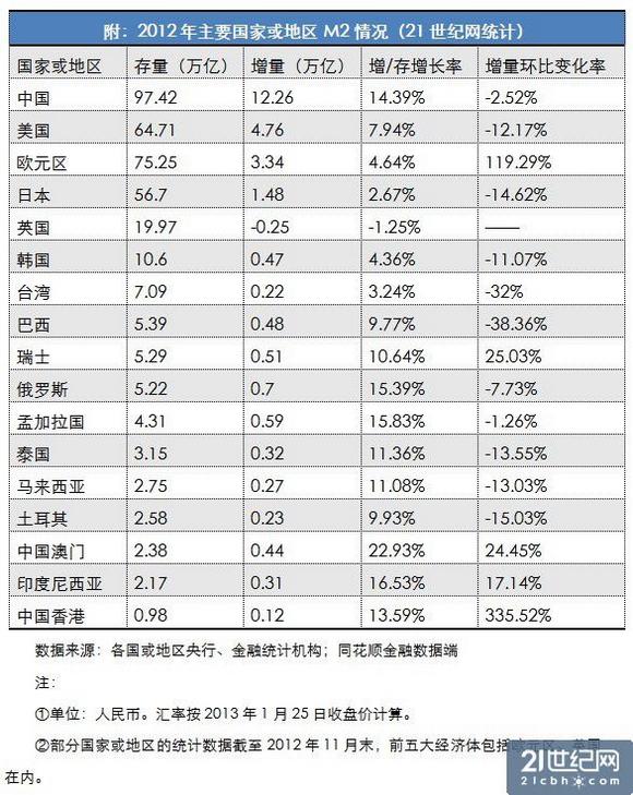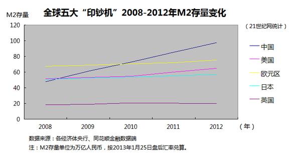 (3)2008-2012年中国与世界M2增量的比较