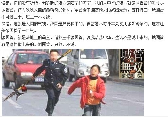 某高级将领张绍忠曾经说过:中国只有2个盟友,城管和渔民,如果有领土问题,请你们和渔民谈。
