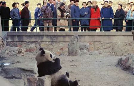 两个月后,中国的一对大熊猫“玲玲”和“兴兴”,就乘坐一架波音707专机,去了美国华盛顿的动物园。公开展示的第一天,2万名美国人排队参观。连两只大熊猫栖身过的,写着“中华人民共和国”字样的箱子,都被拿出来展览。